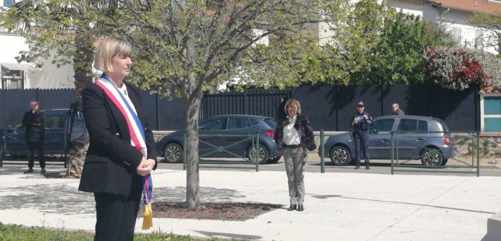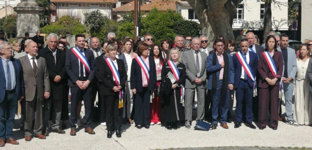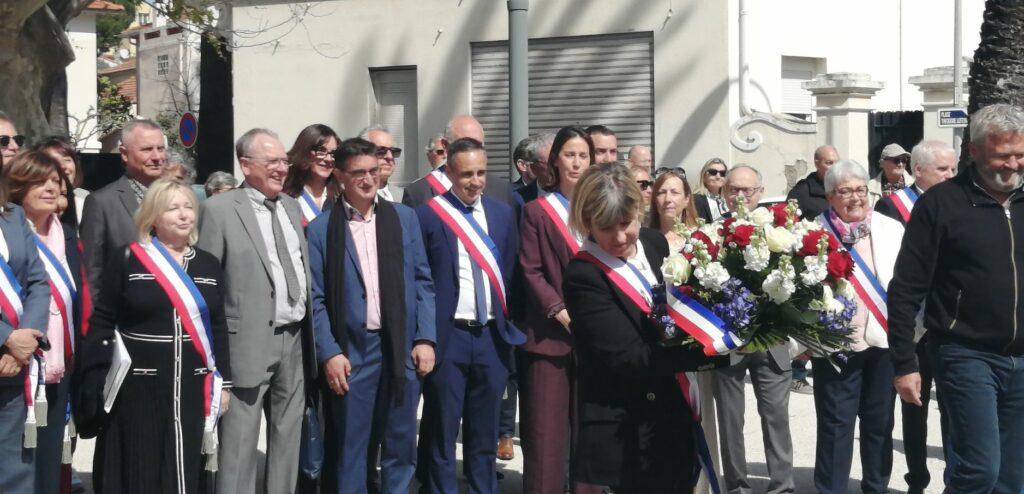 En fin de cette réunion, les membres élus du conseil municipal sont allés dans une démarche protocolaire se recueillir au monument aux morts de la place Lefevre, où Madame La Maire a déposé une gerbe de fleur. Courte cérémonie ponctuée en final par une Marseillaise reprise en cœur par l’ensemble des élus.